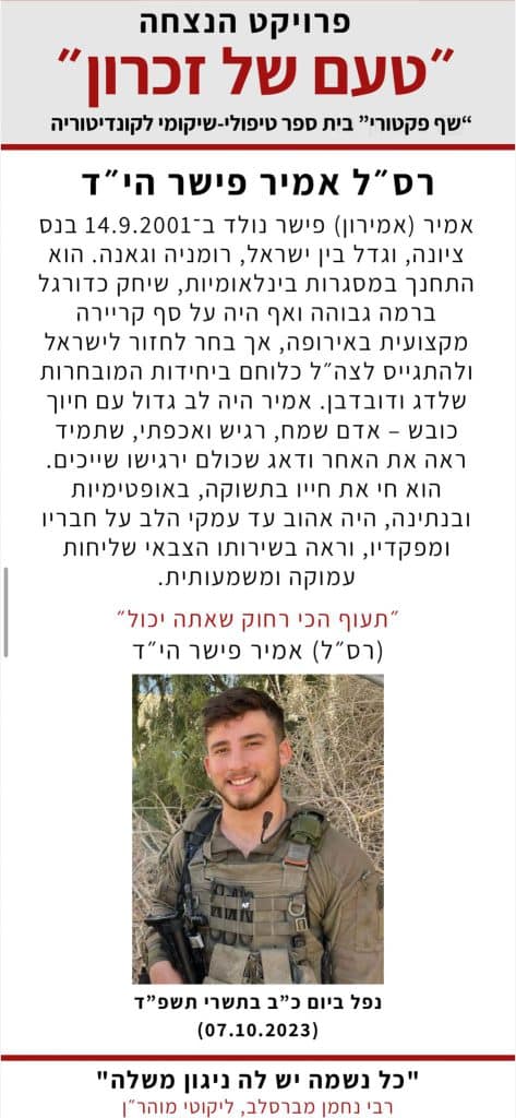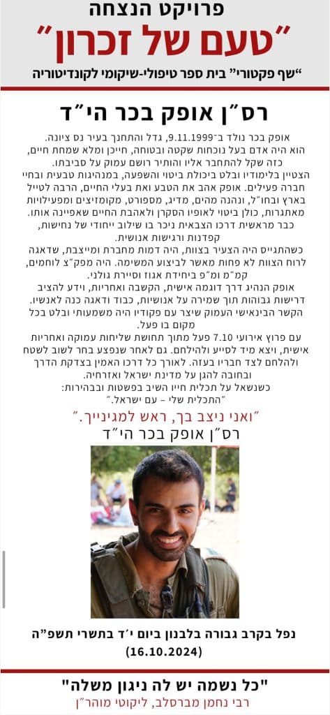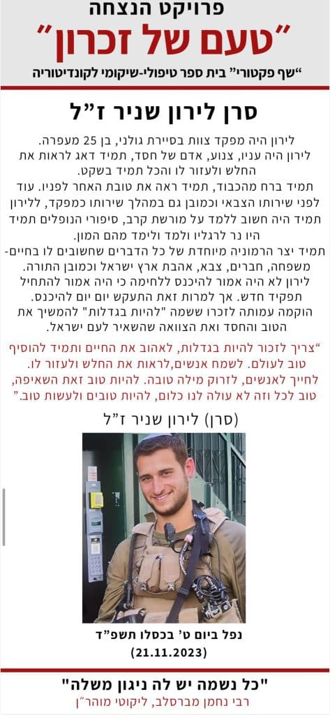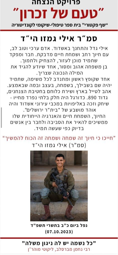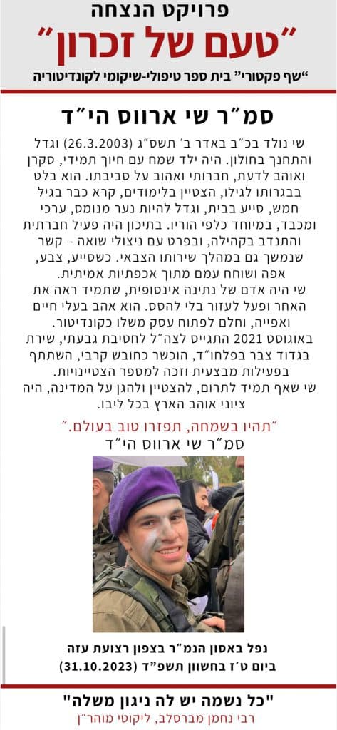 “טעם של זיכרון” הוא מיזם הנצחה ייחודי המשלב בין עולמות הקונדיטוריה, הזיכרון והחוסן הנפשי.